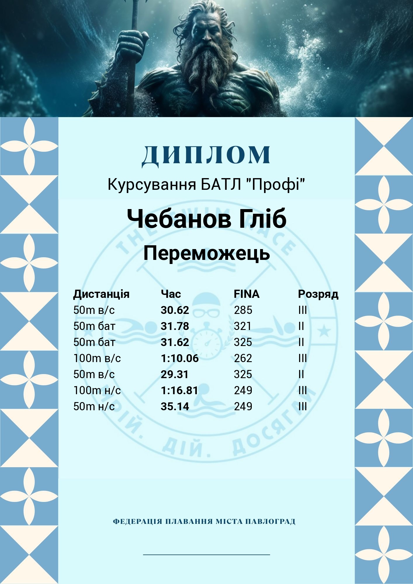 | 2 | Чебанов Гліб (2013) | 31.62 |